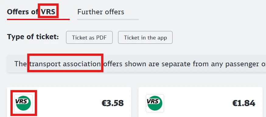 As a rough guide, you can also check in DB Navigator or on the DB website whether association tickets are sold for a route. These are marked as Verbund-Angebote, with the logo and under offers of [association name].